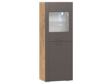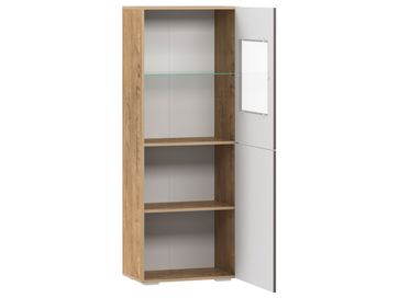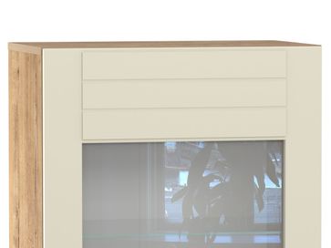 Характеристики: <br> Материал каркаса: ЛДСП.<br> Материал фасада: МДФ в ПВХ пленке, стекло.<br> Материал ручек и опор: пластик.<br> Механизм открывания: петли.<br> Наполнение: 3 полки.<br> Ориентация сборки: универсальная.<br> None Страна производства: Россия