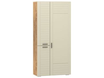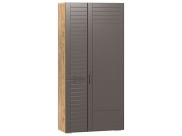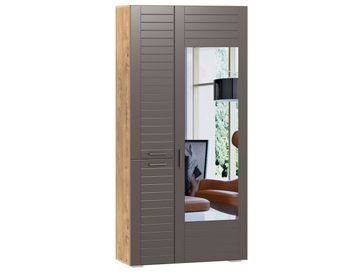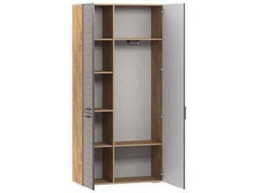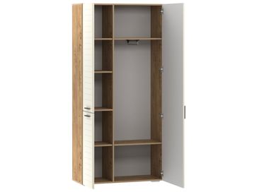 Преимущества: <br> комбинированное наполнение — система хранения подразумевает шесть полок и штангу для одежды на вешалках;<br> стильный дизайн — сочетание оттенка и текстуры натурального дерева и матового фасада придает изделию изящества;<br> регулируемые опоры — позволяют установить модель даже на неровной поверхности.<br> <br>