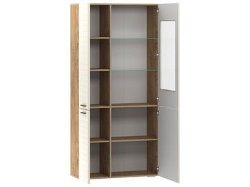 Шкаф-витрина Ливорно с четырьмя отсеками, которые позволят распределить большое количество вещей. В отделе со стеклянной дверкой находятся полки из стекла, где можно расставить сервиз или любимые книги.<br>