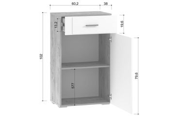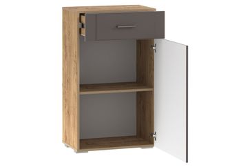 Обувница Ливорно оснащена выдвижным ящиком для мелких предметов и отделом с полкой за распашной дверкой. Благодаря лаконичности и вместительности обувница станет удачным и выгодным дополнением прихожей.<br>