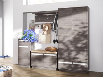 Преимущества: <br> практичное хранение — вешалка оснащена крючками и штангой для верхней одежды, а также полочкой для головных уборов, зонтов и аксессуаров;<br> настенное крепление — экономит пространство в маленькой прихожей;<br> модульная серия — модель будет гармонично сочетаться с элементами серии Вирджиния.<br>