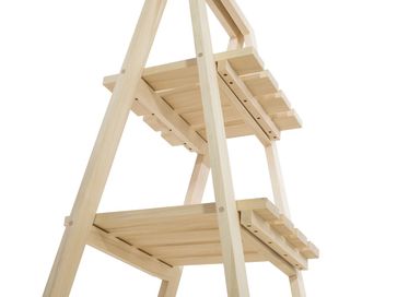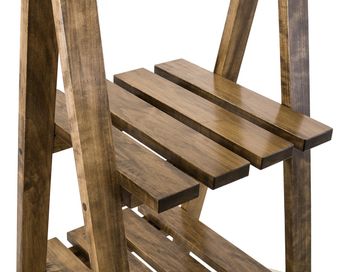Удивительный стеллаж из массива березы Тихон сочетает в своем образе элементы стремянки и художественного мольберта. Он наполнен особой харизмой и в хозяйстве будет весьма полезен.<br>