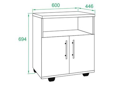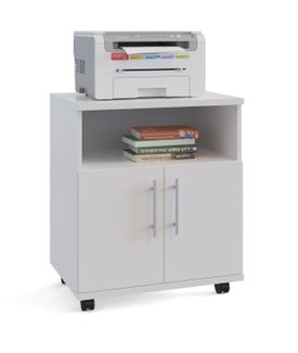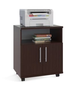Универсальная тумба под офисную технику. Служит для меблировки рабочего кабинета или конференц-зоны. Размеры (ВхШхГ): 694 х 600 х 446 мм. Тумба имеет открытую нишу и закрытый шкафчик с полкой. Оборудована колесиками для удобного перемещения по комнате.<br>