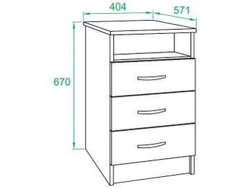 Тумба с ящиками КТ-14 служит для меблировки рабочей зоны. Она имеет открытую нишу и три выдвижных ящика для канцелярских принадлежностей. Внутренние размеры ящика — 474 х 322 мм.<br> Изделие выполняется из ЛДСП толщиной 16 и 22 мм, края обработаны кромкой ПВХ 0,4 и 2 мм. В ящиках используются роликовые направляющие.<br>