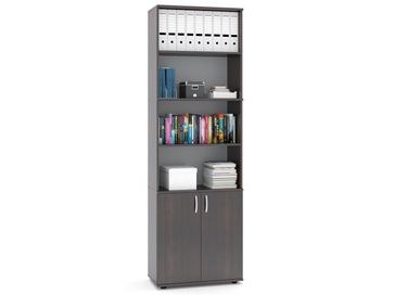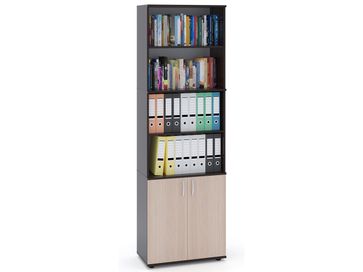 Стеллаж ШУ-41 поставляется с нижними дверками. Верхние полки полностью открыты, что удобно для хранения папок с документами, а также вещей, которые часто нужны под рукой. </br>Изделие оснащено пластиковыми ножками, предотвращающими размокание ДСП вследствие влажной уборки напольного покрытия. </br>Ручки на дверях пластиковые.<br>