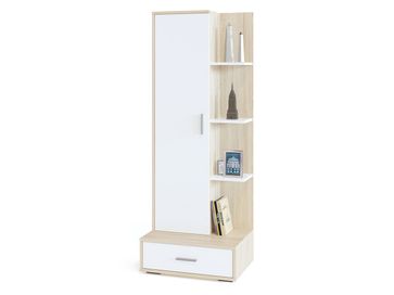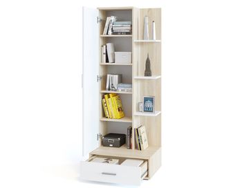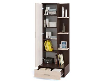 Стеллаж Юстас — это универсальная модель, идеально подходящая как для квартиры, так и для офиса. Его стильный минималистичный дизайн в сочетании с продуманной системой хранения делает изделие актуальным и современным решением. Он вместителен, но при этом компактен. Это позволяет использовать его для обустройства помещения любой площади.<br> Преимущества: <br> вместительный — множество полочек и отделений для хранения;<br> металлическая фурнитура — стильная и долговечная;<br> функциональный — закрытое отделение для канцелярии и книг, открытое — для декора;<br> шариковые направляющие полного выдвижения — бесшумное выдвижение ящика, долговечность конструкции.<br>
