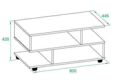 Журнальный столик Блиц — компактная и одновременно функциональная модель, которая будет удачно смотреться в любом интерьере. Несколько открытых ниш позволят организовать упорядоченную систему хранения всевозможных мелочей. Столик оборудован поворотными колесиками для удобного перемещения.<br>