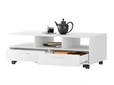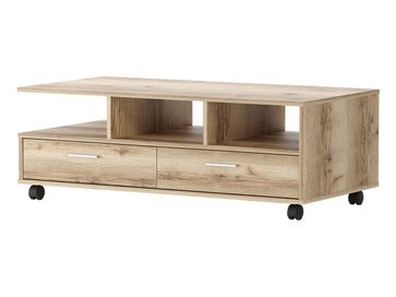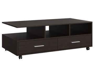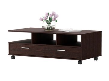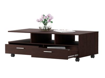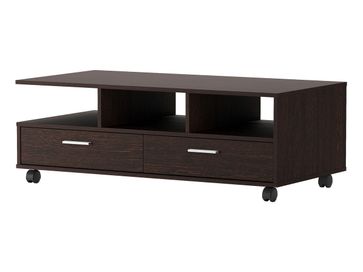 Журнальный столик Стью — функциональная модель, которая будет удачно смотреться в любом интерьере. Несколько открытых ниш и пара выдвижных ящиков позволят организовать упорядоченную систему хранения. Столик оборудован поворотными колесиками для удобного перемещения.<br>