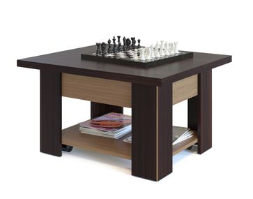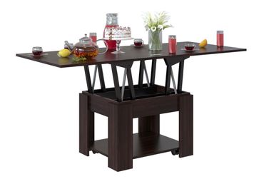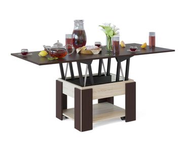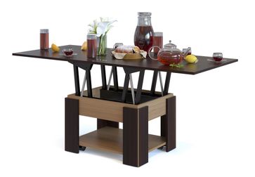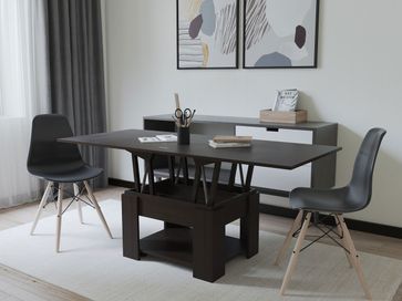 Современное видение популярной модели стола-трансформера не оставит вас равнодушными. В модели используется технология обработки углов под 45 градусов, что делает силуэт стола неповторимым.</br>Модель предполагает не просто увеличение длины столешницы от 800 мм до 1600 мм, но и увеличение ее уровня. Таким образом, вы сможете использовать стол и как журнальный, и как полноценный обеденный стол. В сложенном виде высота стола составляет 450 мм. На нижней полочке вы сможете хранить небольшие вещи, которые всегда нужны под рукой.</br> Столик комплектуется колесными опорами с фиксаторами.<br>