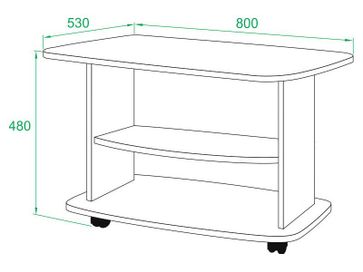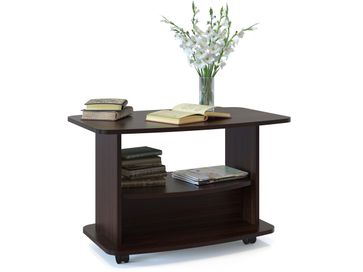 Небольшой журнальный столик подойдет практически к любому интерьеру. Под столешницей находится полочка для хранения журналов и пультов от техники. Пространство под полкой разделено на две части, это позволит удобно расположить вещи, которые не должны бросаться в глаза.</br>Стол оборудован поворотными колесами, которые облегчают его перемещение по комнате.<br> Максимальная нагрузка на столешницу составляет 50 кг. Изделие выполнено из ЛДСП.<br>Рекомендуем сохранить инструкцию по сборке (паспорт изделия) до истечения гарантийного срока. None Страна производства: Россия