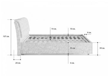 Габариты: <br> Высота ниши под матрас: 10 см.<br> Высота боковой части: 33 см.<br> Высота изголовья от основания: 68 см.<br> Высота ножек: 6 см.<br> Полезная высота короба: 14 см.<br>