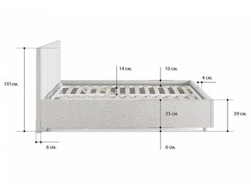 Габариты: <br> Высота ниши под матрас: 10 см.<br> Высота боковой части: 33 см.<br> Высота изголовья от основания: 62 см.<br> Высота ножек: 6 см.<br> Полезная высота короба: 14 см.<br>