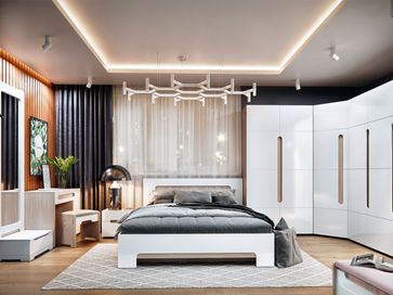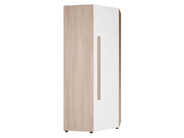 Изящный угловой шкаф Палермо С выполнен в минималистичном дизайне, но при этом не лишен функциональности. Продолговатая выемка на двери шкафа заменяет ручку: при открытии шкафа не придется касаться глянцевой поверхности, тем самым дверца будет меньше пачкаться.<br> Сочетание цветов визуально делает комнату легче, просторнее и светлее. Отличный вариант для гостиной, спальни или детской в стиле минимализм.<br>