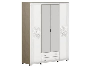 Распашной четырехстворчатый шкаф Бьянка гармонично впишется в интерьер спальни или гостиной и позволит организовать практичную систему хранения всех предметов гардероба — от верхней одежды и обуви до белья и аксессуаров. А очаровательный декор на фасадах подарит обстановке особую роскошь.<br>