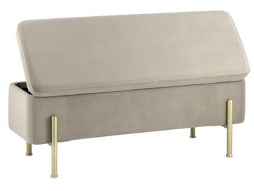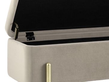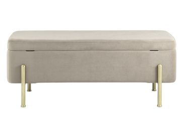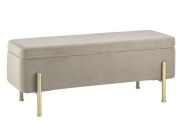 Банкетка Болейн в стильном современном исполнении станет функциональным дополнением гостиной или прихожей. Нейтральный оттенок мягкой обивки и золотистые опоры создают элегантный образ модели. Под сиденьем предусмотрен вместительный ящик для хранения необходимых вещей. Опоры оснащены мягкими накладками, которые защищают напольное покрытие от повреждений.<br>