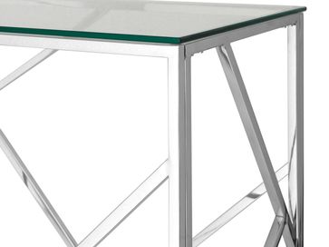 Консоль Арт Деко станет ярким акцентом в вашем интерьере благодаря оригинальному и современному дизайну. Консоль можно поставить в спальной комнате или гостиной.<br> Характеристики: <br> Материал столешницы: закаленное стекло.<br> Материал каркаса: нержавеющая сталь.<br> Подпятники: защищают поверхность пола от повреждений.<br> Регулируемые опоры: при необходимости компенсируют незначительные неровности напольного покрытия.<br> Высота регулируемых опор: до 10 мм.<br> None Страна производства: Китай
