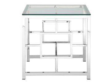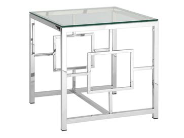 Квадратный журнальный стол Бруклин 55 — красивый и функциональный предмет мебели в любом интерьере. Его стальные серебряные опоры придают ему богатый вид, а нестандартная форма каркаса с геометрическими фигурами по бокам делают его особенным и неповторимым.<br>