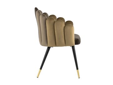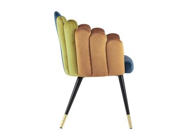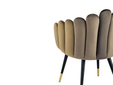 Стул Камелия сочетает в себе эффектный дизайн, надежность и высокий уровень комфорта. Оригинальная форма спинки и золотой декор на ножках делают модель ярким элементом любого интерьера. Обивка выполнена из приятного на ощупь износостойкого велюра. Металлический каркас и устойчивые опоры обеспечивают прочность и долговечность.<br>