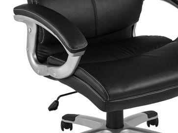 Характеристики: <br>Материал крестовины: металл.<br> Материал подлокотников: металл, экокожа.<br> Материал обивки: экокожа.<br> Материал колес: пластик.<br> Регулируемая высота сиденья: 460-560 мм.<br> Механизм регулировки высоты: газлифт.<br> Механизм качания: топ-ган.<br> Максимальная нагрузка: 130 кг.<br> None Страна производства: Китай