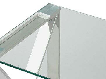 Характеристики: <br> Материал столешницы: закаленное стекло.<br> Материал ножек: нержавеющая сталь.<br> Максимальная нагрузка: 15 кг.<br> None Страна производства: Китай