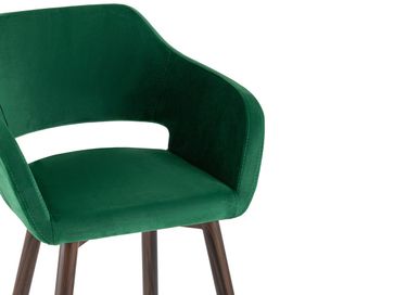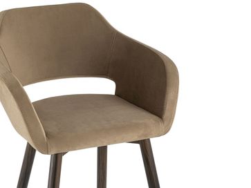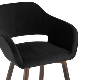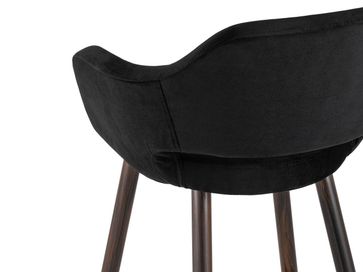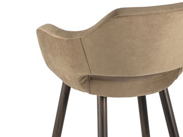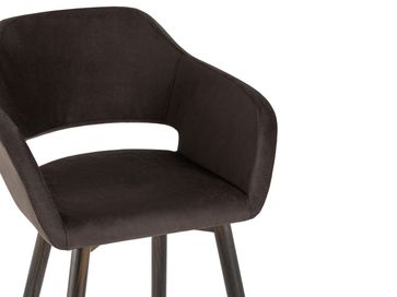 Барный стул Саймон — стильная и комфортная модель с удобными подлокотниками. Каркас спинки выполнен из металлических прутьев, что обеспечивает особые прочность и долговечность. В качестве наполнителя используется эластичный материал, который хорошо сохраняет форму. Устойчивые ножки стилизованы под темное дерево и оборудованы перекладиной для ног.<br>