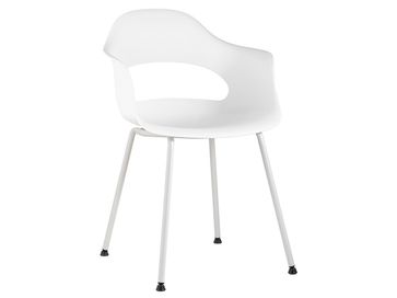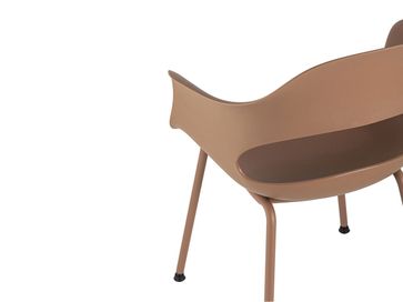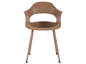 Практичный и удобный стул Леди станет удачным дополнением обеденной зоны. Плавные линии спинки и подлокотников заботятся о комфортном времяпрепровождении. Прочный пластик не боится влаги, не впитывает посторонние запахи и легко очищается от загрязнений. На металлических ножках предусмотрены защитные подпятники, поэтому модель не царапает напольное покрытие.<br>