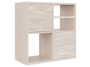 Стеллаж Микс 4 с ящиками и дверцей поможет привлекательно и практично обустроить интерьер офиса или дома. Сборка модели универсальна, вы сможете разместить ящики, дверцу и полку по своему желанию.<br>