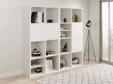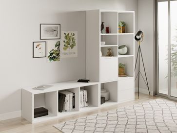 Стеллаж Микс 8 с ящиками и дверцей отлично справится с хранением различных вещей, документов, книг и предметов декора. Сборка модели универсальна, вы сможете разместить ящики, полки и дверцу по своему желанию.<br>