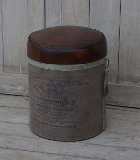Каркас сделан из жестяного листа, для обивки применяется ткань с печатным рисунком и кожа буйвола, по бокам дизайнеры добавили очаровательные железные колечки. Пуфик весит всего 4 кг и ему без труда можно менять место обитания в доме.<br> None Страна производства: Индия