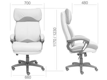 Характеристики: <br> Материал крестовины: пластик.<br> Диаметр крестовины: 660 мм.<br> Материал подлокотников: пластик с мягкими накладками.<br> Материал колес: полиуретан.<br> Механизм регулировки высоты: газлифт.<br> Механизм качания: с фиксацией в любом положении.<br> Регулируемая высота сиденья: 510-570 мм.<br> Габариты сиденья (ШхГ): 530 х 480 мм.<br> Максимальная нагрузка: 120 кг.<br> None Страна производства: Китай