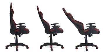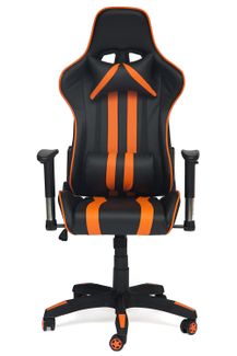 Характеристики: <br> Материал крестовины и подлокотников: пластик.<br> Материал обивки: искусственная кожа.<br> Материал роликов: прорезиненный пенополиуретан.<br> Ролики безопасны для паркета и ламината.<br> Механизм трансформации «реклайнер».<br> Механизм качания «топ-ган».<br> Подлокотники регулируются по высоте.<br> Регулируемая высота сиденья: 460-565 мм.<br> Подголовник регулируется по высоте.<br> Две подушки в комплекте.<br> Подушки крепятся с помощью ремней.<br> Максимальная нагрузка: 120 кг.<br> None Страна производства: Китай