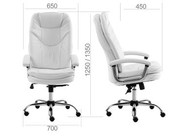 Характеристики: <br> Материал крестовины: хромированный металл.<br> Диаметр крестовины: 700 мм.<br> Материал подлокотников: металл с мягкими накладками.<br> Материал колес: полиуретан.<br> Механизм регулировки высоты: газлифт.<br> Механизм качания: с фиксацией в любом положении.<br> Регулируемая высота сиденья: 530-630 мм.<br> Габариты сиденья (ШхГ): 490 х 450 мм.<br> Максимальная нагрузка: 120 кг.<br> None Страна производства: Россия