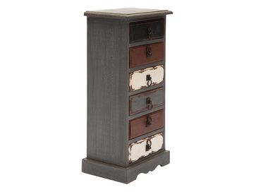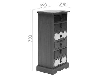 Маленький винтажный комод Талли от французских дизайнеров имеет шесть очаровательных ящиков с металлическими ручками-колечками на фасадах. Вы можете поставить этот комод в любой комнате вашей квартиры или загородного дома, он будет самым гармоничным образом вписываться в обстановку и делать ее уютнее. В ящиках вы сможете держать под рукой разные мелочи.<br>