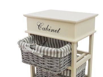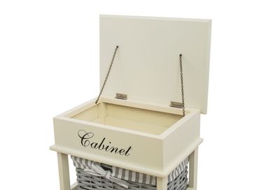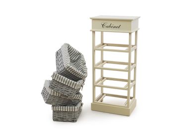 Этажерку Хабена с четырьмя плетеными корзинами вы можете поставить где угодно: в прихожей, в гостиной, в спальне или дополнить с ее помощью интерьер загородного дома. Она имеет очень компактные размеры, но при этом достаточно вместительна. Под верхней откидной полочкой этажерка скрывает дополнительную нишу для мелочей.<br>