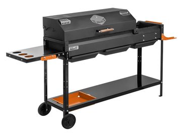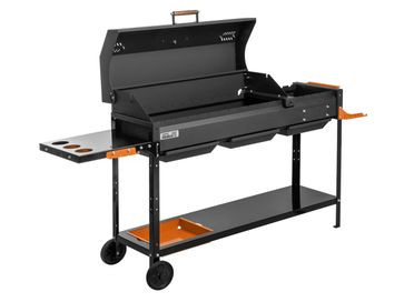 Мангал SMART-1200 Премиум — удобная и вместительная модель, которая позволяет одновременно готовить несколько разных блюд. Жаровня с перфорированным дном оснащена съемными зольниками и крышкой для гриля. Во время приготовления можно пользоваться небольшим столиком с подстаканниками и компактным держателем для инструментов. Благодаря колесам и боковой ручке мангал легко перемещать.<br>