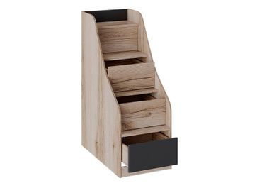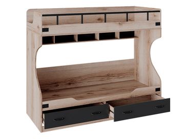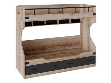 Характеристики: <br> Материал каркаса: ЛДСП с кромкой ПВХ.<br> Материал ручек: металл.<br> Высота спального места от пола до нижнего яруса: 329 мм.<br> Высота спального места от пола до верхнего яруса: 1375 мм.<br> Рекомендуемая высота матраса для нижнего яруса: 120 мм.<br> Рекомендуемая высота матраса для верхнего яруса: 100 мм.<br> Высота бортика: 295 мм.<br> Максимальная нагрузка на спальное место: 100 кг.<br> Тип направляющих ящиков кровати: шариковые.<br> Тип направляющих ящиков лестницы: роликовые.<br> Ящики на лестнице открываются за отверстие на фасаде.<br>