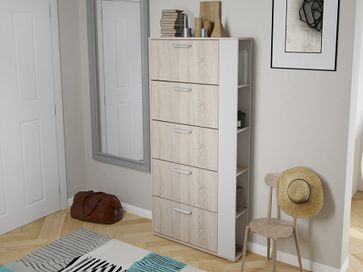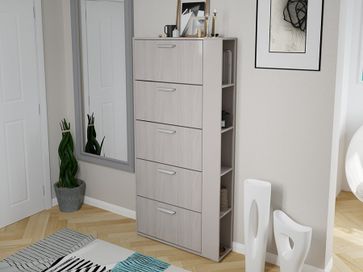 Обувница Эрика — компактная и одновременно вместительная модель для прихожей в современном стиле. В закрытых откидных ящиках удобно хранить обувь и домашние тапочки. Боковые полки позволят аккуратно разместить средства по уходу, ключи, аксессуары и другие мелочи.<br>