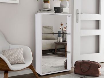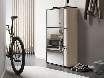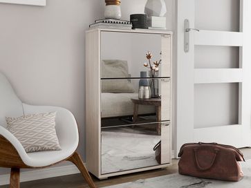 Обувница Мира 3 станет настоящей изюминкой прихожей благодаря оригинальному внешнему виду. Фасады с зеркальным полотном позволят визуально расширить пространство и дадут возможность посмотреть на свое отражение. Вместительные откидные секции обеспечат удобное хранение обуви и аксессуаров по уходу.<br>