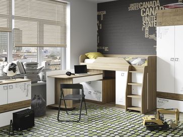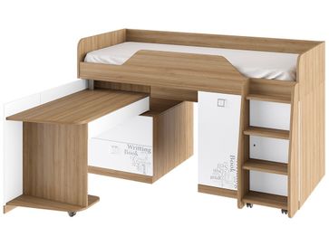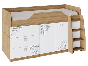 Характеристики: <br> Материал каркаса: ЛДСП с ABS-кромкой.<br> Материал ручек: металл.<br> Высота спального места от пола: 1375 мм.<br> Рекомендуемая высота матраса: 100 мм.<br> Высота бортика: 280 мм.<br> Максимальная нагрузка на спальное место: 100 кг.<br> Ориентация сборки: универсальная.<br> Наполнение: распашной шкафчик с полкой, два выдвижных ящика, выдвижной письменный стол.<br> Тип направляющих: шариковые.<br>
