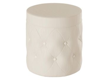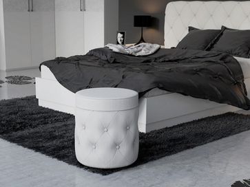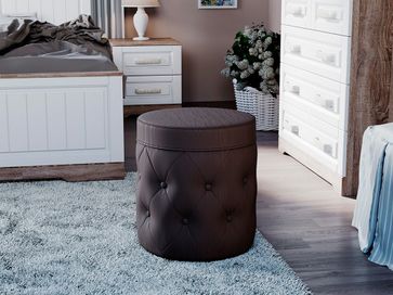 Пуфик имеет мягкое сиденье и комфортную высоту в 430 мм. Для каркаса пуфика используется фанера, которая обита экокожей с текстурным декором. Боковая поверхность оформлена каретной стяжкой с пуговками.<br>