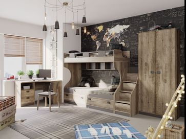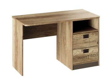 За детским письменным столом Пилигрим комфортно делать уроки, рисовать или заниматься хобби. Скругленные углы позаботятся о безопасности, а на открытой полке и в ящиках удобно хранить всё необходимое для учебы и творчества. Изюминка модели — стильный декор в виде надписей и оригинальных ручек.<br>