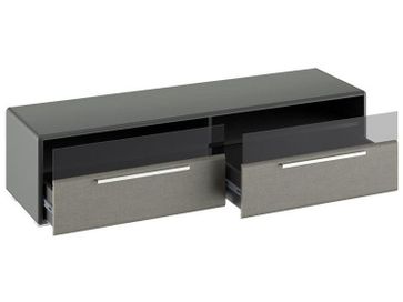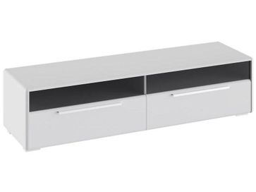 ТВ-тумба Наоми станет настоящим украшением гостиной или спальни. Миниатюрное изделие поможет внести яркий штрих в оформление обстановки и ежедневно будет радовать изумительным внешним видом.<br> Настоящая гордость модели — просторная столешница, специально предусмотренная для аппаратуры практически любых габаритов. Основу тумбы составляют два ящика на шариковых направляющих, фасады которых имеют вставки из тонированного стекла. Они не только придают фасаду особую элегантность, но и привносят нотку практичности: вы можете увидеть содержимое выдвижных отделений, не открывая их.<br> Опорой изделию служат низкие пластиковые ножки, смещенные под каркас, за счет чего создается несравненный эффект парения в воздухе.<br> <br>Материал каркаса: ЛДСП, МДФ.<br> Материал фасада: МДФ, пленка ПВХ, стекло.<br> Материал кромок каркаса и фасада: ABS.<br> Материал ножек: пластик.<br> Материал ручек: металл.<br> Тип направляющих: шариковые. None Страна производства: Россия