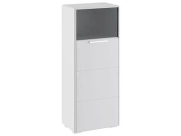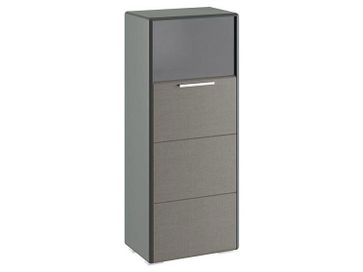 Комбинированный шкаф Наоми олицетворяет максимальную функциональность при минимуме занимаемого пространства. Благодаря этой очаровательной модели любой интерьер заиграет новыми красками, а обстановка станет уютной и комфортной.<br> Конструкцией предусмотрены две съемные и одна стационарная полки, выполненные из ЛДСП, верхняя из которых находится за вставкой из тонированного стекла. Просторные отделения позволяют вместить много посуды, одежды и различных предметов декора.<br> Опорой изделию служат низкие пластиковые ножки, смещенные под каркас, за счет чего создается несравненный эффект парения в воздухе.<br> Шкаф универсален по сборке: дверцу можно навесить как слева, так и справа.<br> <br>Материал каркаса: ЛДСП, МДФ.<br> Материал фасада: МДФ, пленка ПВХ, стекло.<br> Материал кромок каркаса и фасада: ABS.<br> Материал полок: ЛДСП.<br> Материал ножек: пластик.<br> Материал ручек: металл. None Страна производства: Россия