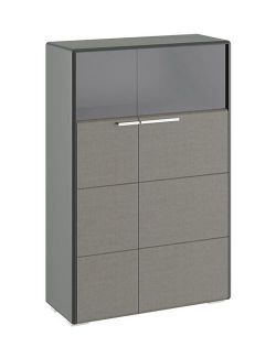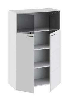 Комбинированный шкаф Наоми восхищает креативным исполнением. Он чудесным образом впишется в обстановку гостиной, подарив интерьеру пленительное очарование и несравненную нотку изысканности.<br> В этой модели приятно удивляет всё — от невероятно удобных дверей до продуманного внутреннего наполнения. Оригинальная конструкция фасада в виде двух самостоятельных частей, визуально объединенных в единое целое, превращает изделие в настоящий идеал эстетики.<br> Полки внутри являются сплошными, поэтому на них удобно разместить как посуду и предметы декора, так и одежду. Верхнее отделение скрыто за вставками из тонированного стекла, благодаря чему здесь будут уместно смотреться изысканный коллекционный набор или дорогие сердцу статуэтки и поделки.<br> Опорой изделию служат низкие пластиковые ножки, смещенные под каркас, за счет чего создается несравненный эффект парения в воздухе.<br> Шкаф универсален по сборке: дверцы можно навесить как слева, так и справа.<br> <br>Материал каркаса: ЛДСП, МДФ.<br> Материал фасада: МДФ, пленка ПВХ, стекло.<br> Материал кромок каркаса и фасада: ABS.<br> Материал полок: ЛДСП.<br> Материал ножек: пластик.<br> Материал ручек: металл. None Страна производства: Россия