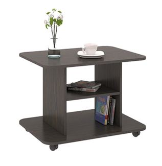 Столешница столика имеет закругленные края. По середине конструкции располагается полочка для разных мелочей. </br>Столик оборудован колесиками для легкого перемещения его по комнате.<br>