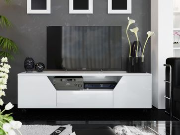 Тумба под ТВ Даймонд 160 отлично дополнит современный интерьер гостиной и обеспечит комфортное размещение телевизора, игровой консоли и любых сопутствующих предметов.<br /> Футуристичный дизайн модуля и глянцевые фасады придадут помещению эстетичный и оригинальный внешний вид. Опоры в виде колесиков позволят легко перемещать тумбу по комнате.<br>