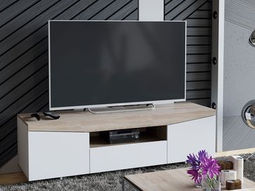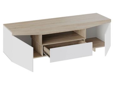 Необычная геометрия ТВ-тумбы Вайт привлекает внимание в любом интерьере. Лаконичные фасады без выступающих элементов придают модели особый лоск и удачно дополняют обстановку гостиной в минималистичном стиле. На поверхности достаточно места для экрана большой диагонали или домашнего кинотеатра.<br>