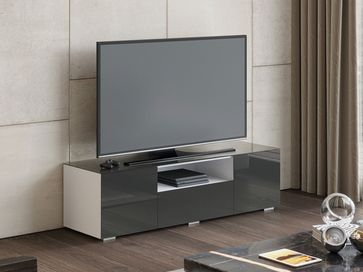 ТВ-тумба Глянец поможет стильно и функционально оформить гостиную в современном интерьере. Сверкающие фасады без ручек, покрытые закаленным стеклом, придают визуальному облику модели эстетичность и изящность. Комбинированное наполнение включает отделения за распашными дверцами, вместительный выдвижной ящик на шариковых направляющих с бесшумным ходом и нишу для видеотехники или игровой консоли.<br>