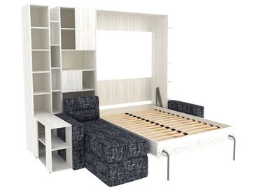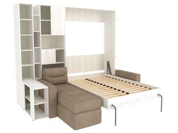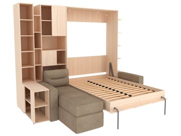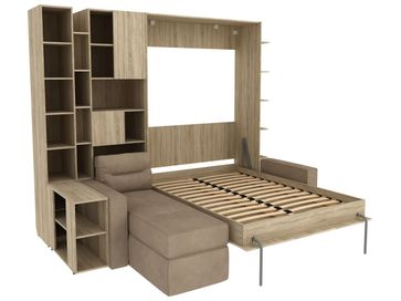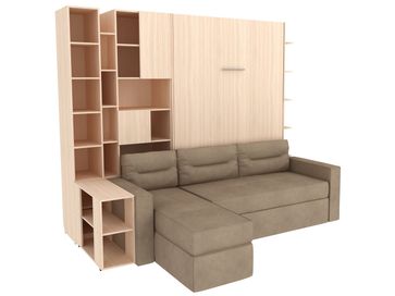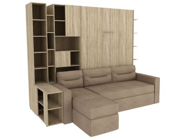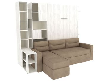 Характеристики: <br> Материал кровати, столика и стеллажей: ЛДСП.<br> Материал каркаса дивана: ЛДСП и фанера.<br> Материал обивки дивана: микровелюр.<br> Наполнитель дивана: пружинный блок Bonnel, синтепон, поролоновая крошка, пенополиуретан.<br> Короб для белья предусмотрен в угловом элементе дивана.<br> Подъемный механизм: газлифты Suspa.<br> Основание: анатомические ламели из фанеры.<br> Высота ниши под кроватью: 292 мм.<br> Размер кровати в сложенном виде (ВхШхГ): 2290 х 1540 х 510 мм.<br> Размер навесной полки (ВхШхГ): 1670 х 150 х 490 мм.<br> Размер столика (ВхШхГ): 630 х 300 х 800 мм.<br> Размер стеллажа (ВхШхГ): 2290 х 300 х 490 мм.<br> Размер широкого стеллажа (ВхШхГ): 2290 х 600 х 510 мм.<br> Ориентация сборки: универсальная.<br> Максимальная нагрузка на спальное место: 120 кг.<br> Рекомендуемая высота матраса: от 16 до 20 см.<br> Рекомендованный вес матраса: от 17 до 35 кг.<br>