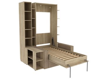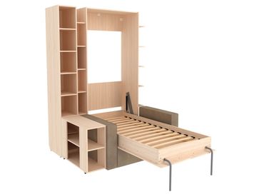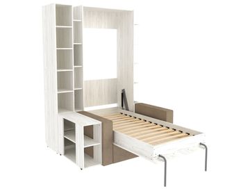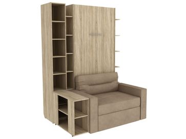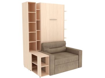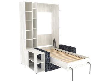 Характеристики: <br> Наполнитель дивана: пружинный блок Bonnel, синтепон, поролоновая крошка, пенополиуретан.<br> Короб для белья: не предусмотрен.<br> Подъемный механизм: газлифты Suspa.<br> Основание кровати: анатомические ламели из фанеры.<br> Высота ниши под кроватью: 29.2 см.<br> Размер кровати в сложенном виде (ВхШхГ): 2290 х 1340 х 510 мм.<br> Размер навесной полки (ВхШхГ): 1670 х 150 х 490 мм.<br> Размер столика (ВхШхГ): 630 х 300 х 800 мм.<br> Размер стеллажа (ВхШхГ): 2290 х 300 х 490 мм.<br> Максимальная нагрузка на спальное место: 120 кг.<br> Максимальная рекомендуемая высота матраса: 20 см.<br> Максимальный рекомендуемый вес матраса: 35 кг.<br> Ориентация сборки: универсальная.<br>